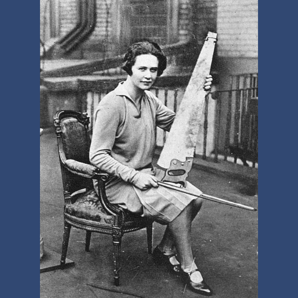 The picture is Dorea in 1929, before she acquired specs and a bookish look, in The Sketch, 27 Mar 1929, with her instrument of choice – a saw. She performed with the Onslow Orpheans, “a group of young people who play dance music for charitable functions.”